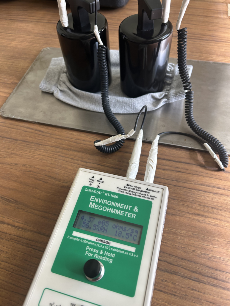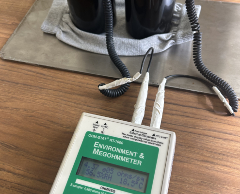 本產品依據 ANSI/ESD S20.20 國際標準設計。材質內部織入連續性導電紗線,因此具備穩定的電荷消散能力。並透過緊密的針織結構確保與皮膚或接地點的有效接觸,藉此成為人員接地系統(Personnel Grounding System)中可靠的一環,有效抑制人體移動時產生的摩擦電壓。