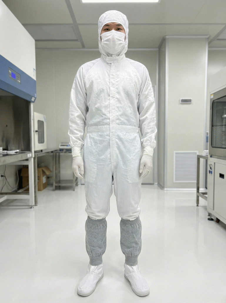 本產品專為半導體封測與精密電子產業設計。並透過導電纖維混紡技術,以此快速釋放人體靜電,藉此防止微粒吸附並保護敏感元件。